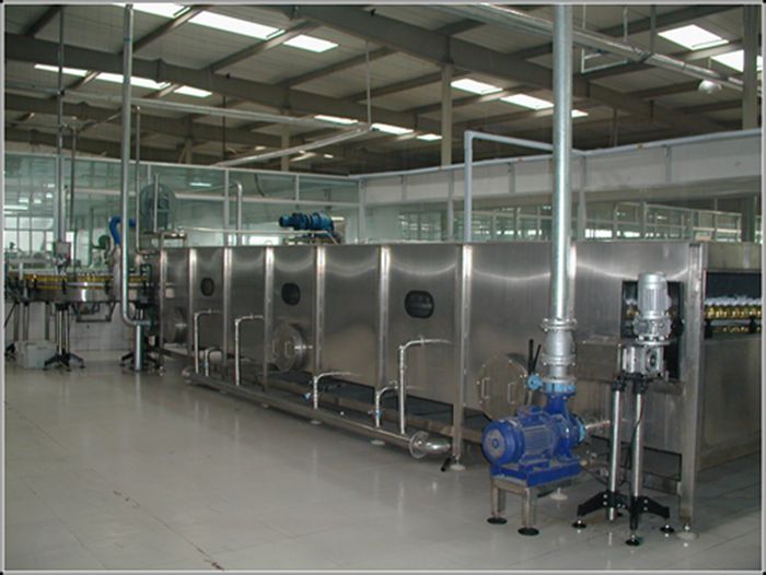 ?The cans and bottles are conveyed to the tunnel sterilizer, water is used as the heat exchange medium.
